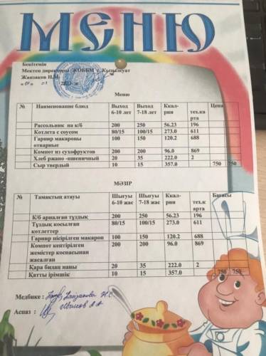 ООШ с. Кызылсуат Информация столовой на 2021-2022учебный год.
